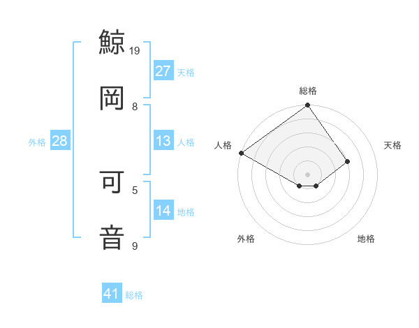 鯨岡 可音さんの総格は41画の5点!