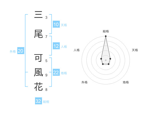 三尾 可風花さんを姓名の画数から五運を鑑定