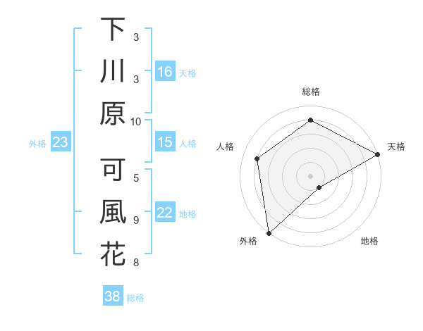 下川原 可風花さんを姓名の画数から五運を鑑定