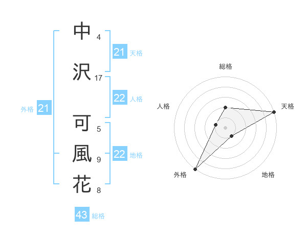 中沢 可風花さんを姓名の画数から五運を鑑定