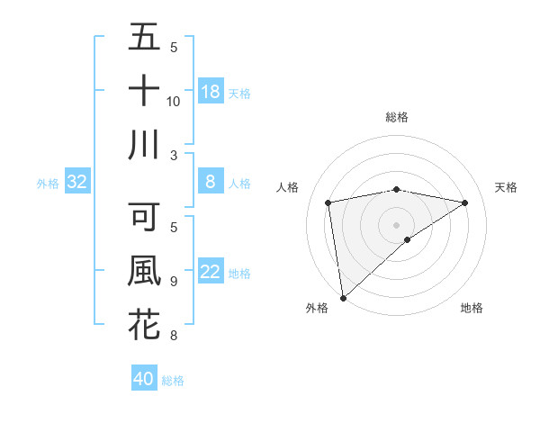 五十川 可風花さんを姓名の画数から五運を鑑定