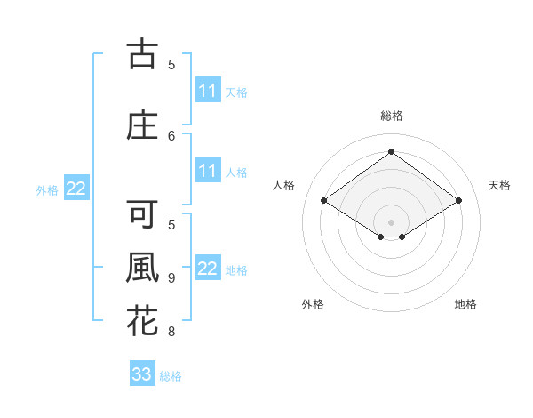 古庄 可風花さんを姓名の画数から五運を鑑定
