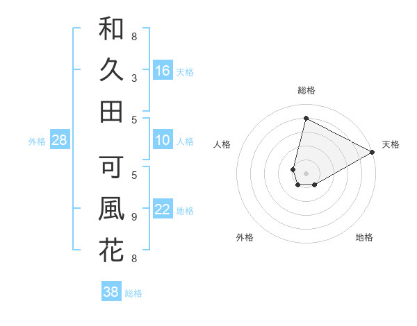 和久田 可風花さんを姓名の画数から五運を鑑定