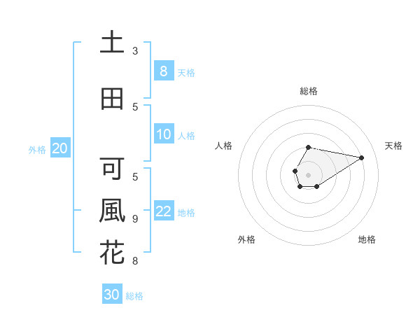 土田 可風花さんの総格は30画の2点!
