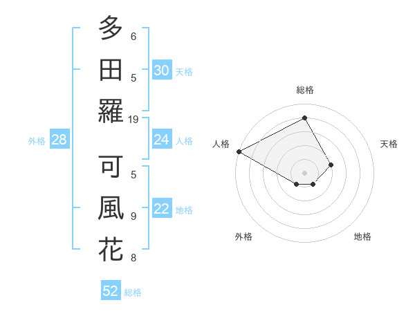 多田羅 可風花さんを姓名の画数から五運を鑑定