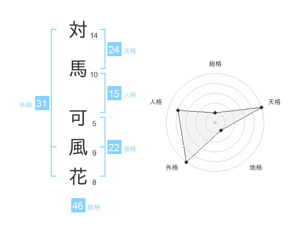 対馬 可風花さんを姓名の画数から五運を鑑定