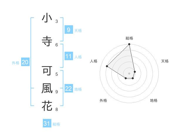 小寺 可風花さんを姓名の画数から五運を鑑定