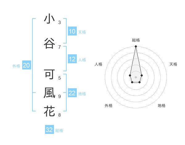 小谷 可風花さんを姓名の画数から五運を鑑定