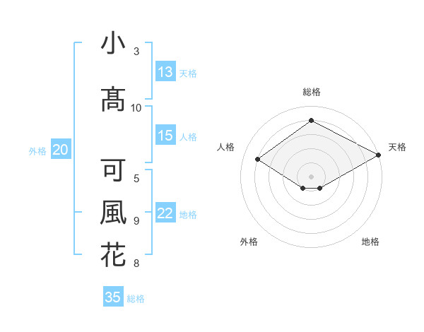 小髙 可風花さんを姓名の画数から五運を鑑定