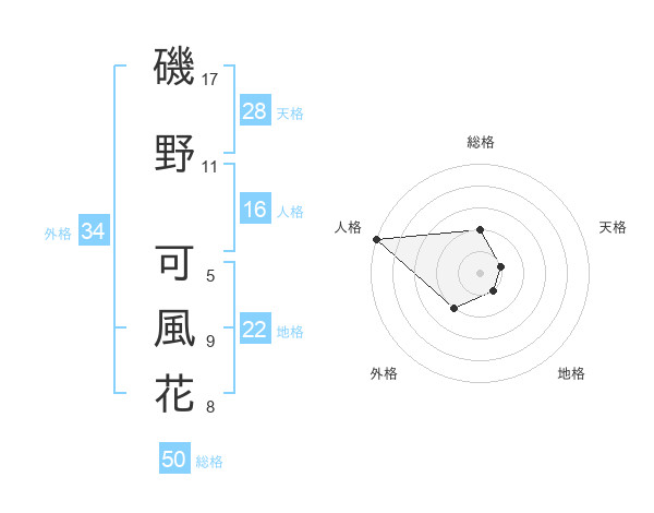 磯野 可風花さんの総格は50画の2点!