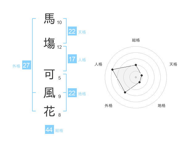 馬塲 可風花さんの地格は22画の1点!