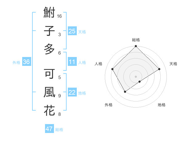 鮒子多 可風花さんを姓名の画数から五運を鑑定