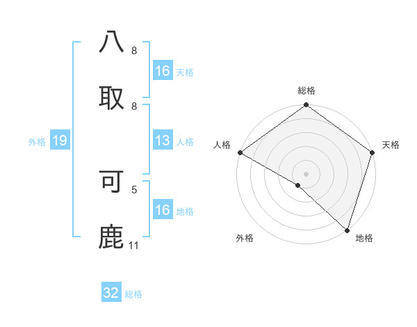 八取 可鹿さんの総格は32画の5点!