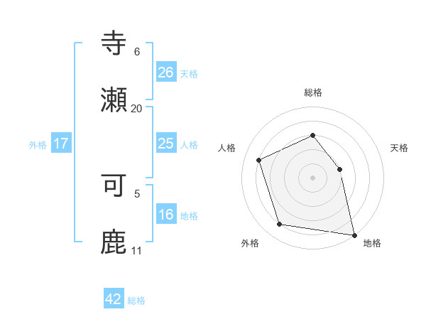 寺瀬 可鹿さんを姓名の画数から五運を鑑定