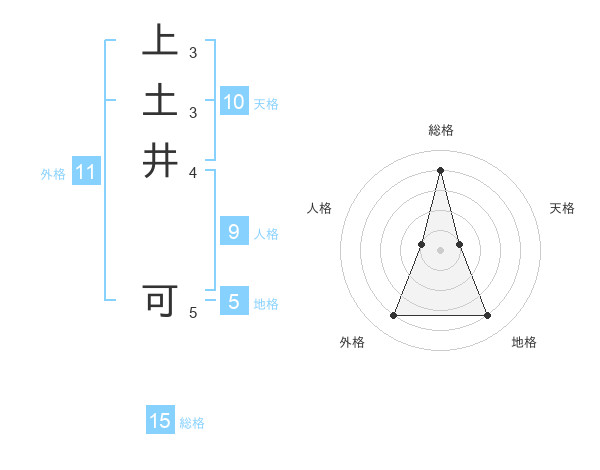 上土井 可さんの総格は15画の4点!