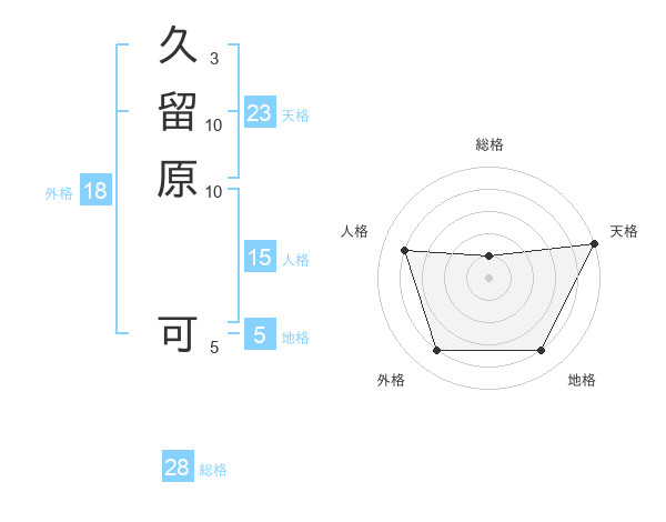 久留原 可さんの天格は23画の5点!