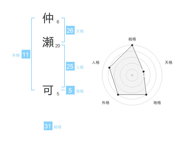仲瀬 可さんの総格は31画の5点!