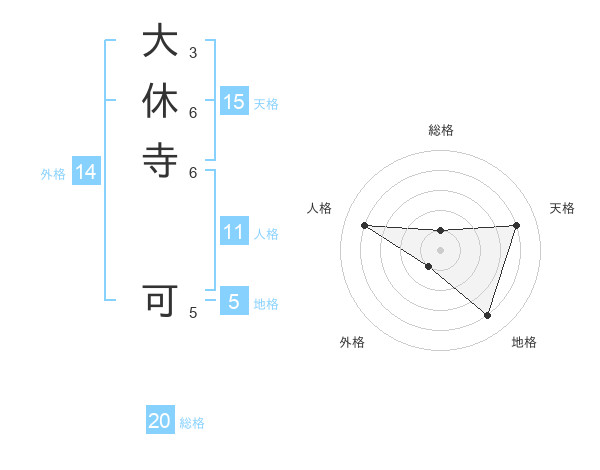 大休寺 可さんの総格は20画の1点!