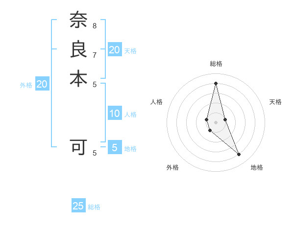 奈良本 可さんの総格は25画の4点!