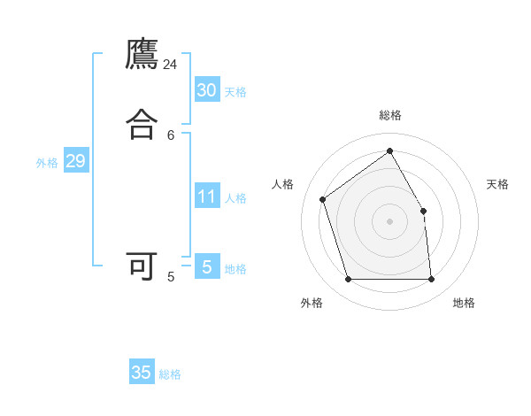 鷹合 可さんの総格は35画の4点!