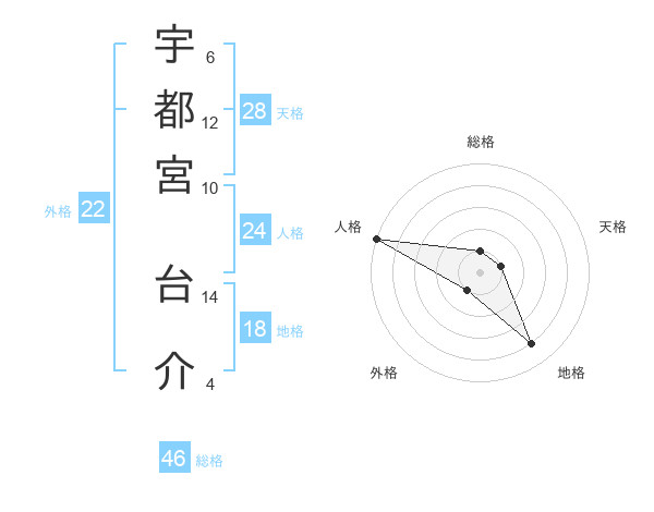 宇都宮 台介さんの総格は46画の1点!