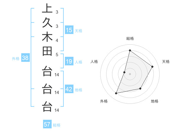 上久木田 台台台さんを姓名の画数から五運を鑑定