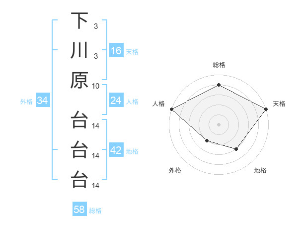 下川原 台台台さんを姓名の画数から五運を鑑定