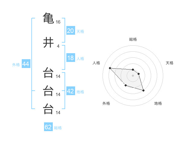 亀井 台台台さんを姓名の画数から五運を鑑定