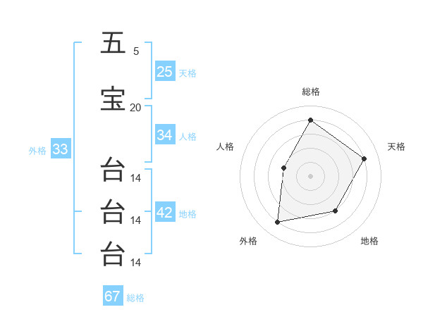 五宝 台台台さんを姓名の画数から五運を鑑定