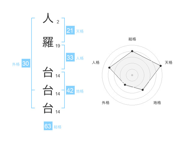人羅 台台台さんを姓名の画数から五運を鑑定