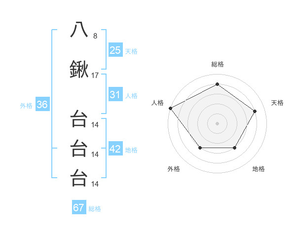 八鍬 台台台さんを姓名の画数から五運を鑑定