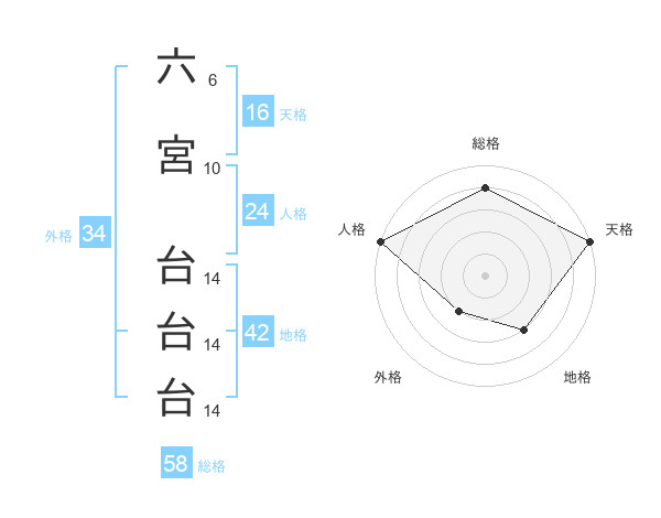 六宮 台台台さんを姓名の画数から五運を鑑定