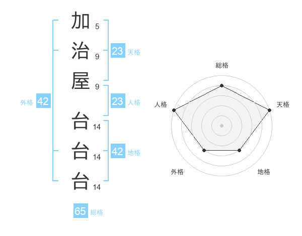 加治屋 台台台さんを姓名の画数から五運を鑑定