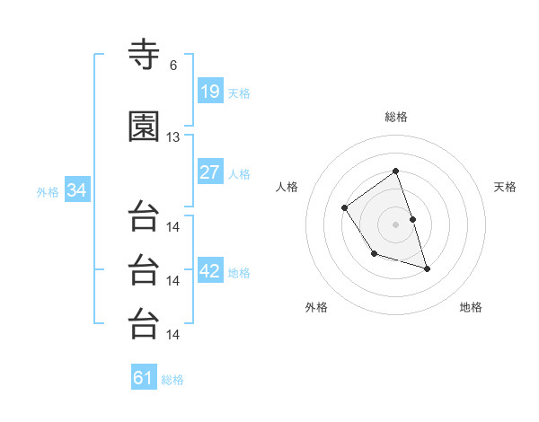 寺園 台台台さんの総格は61画の3点!