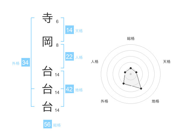 寺岡 台台台さんの総格は56画の1点!