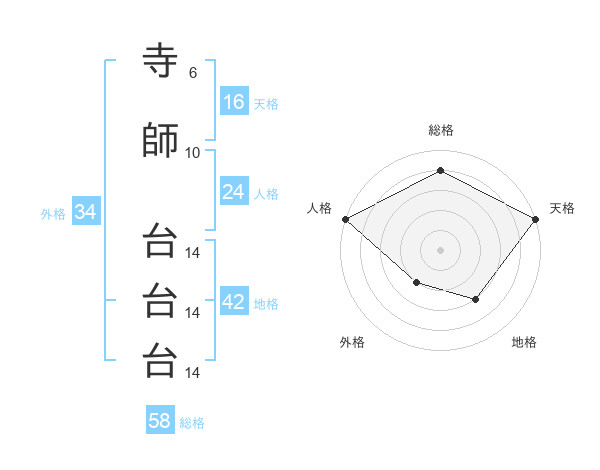 寺師 台台台さんの総格は58画の4点!