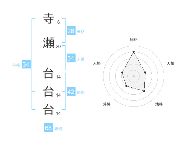 寺瀬 台台台さんを姓名の画数から五運を鑑定