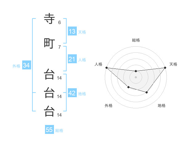 寺町 台台台さんを姓名の画数から五運を鑑定