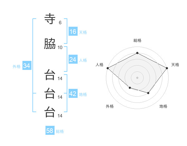 寺脇 台台台さんの総格は58画の4点!