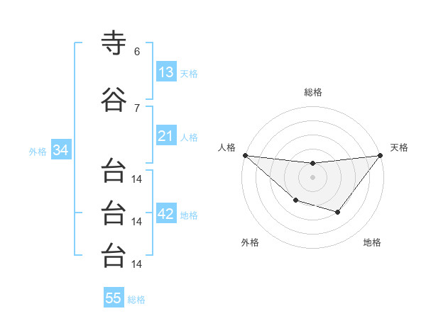 寺谷 台台台さんを姓名の画数から五運を鑑定