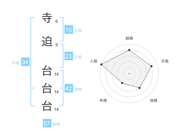 寺迫 台台台さんの総格は57画の4点!