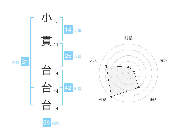 小貫 台台台さんを姓名の画数から五運を鑑定