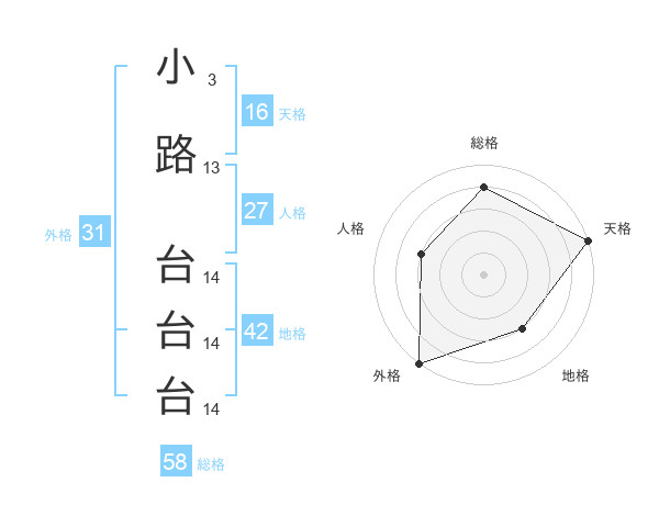 小路 台台台さんの総格は58画の4点!