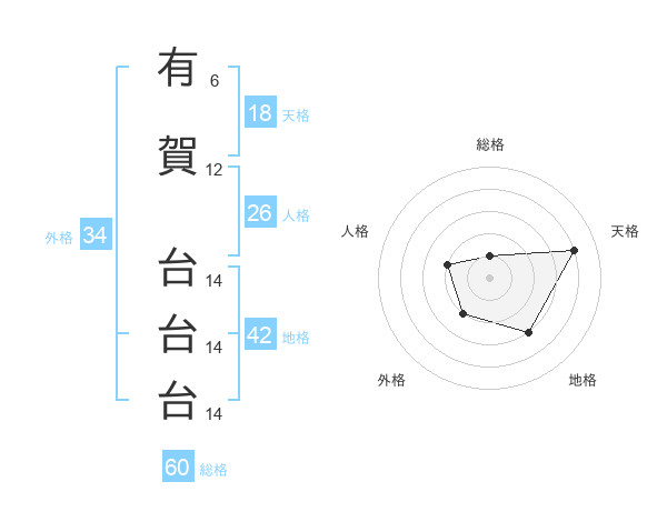 有賀 台台台さんを姓名の画数から五運を鑑定