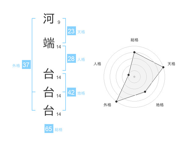 河端 台台台さんの総格は65画の4点!