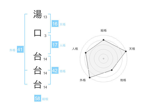湯口 台台台さんの総格は58画の4点!