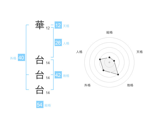華 台台台さんの総格は54画の1点!