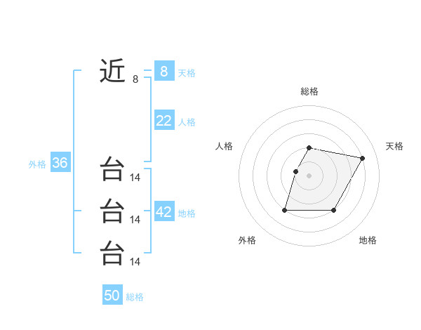 近 台台台さんの総格は50画の2点!