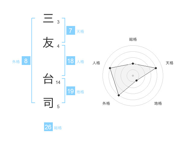 三友 台司さんの総格は26画の2点!