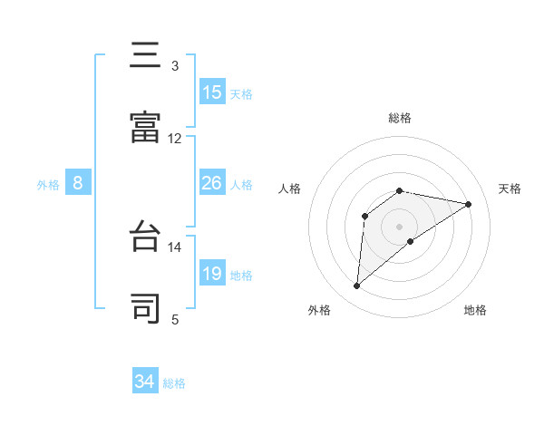 三富 台司さんの総格は34画の2点!